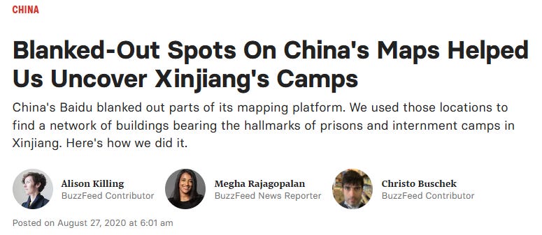 In 2020, when COVID hit, Guan was locked down at home like hundreds of millions of other Chinese people. Bored out of his mind surfing the web, he clicked on a report from the famous American outlet BuzzFeed News (BFN). The report used satellite imagery and data to reveal a massive network of concentration camps spread across Xinjiang.